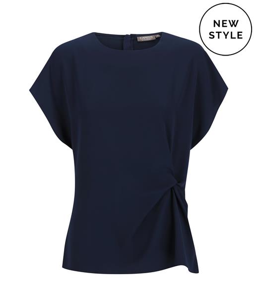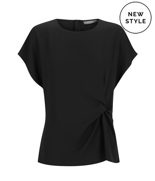 Eco Twill Twist Front Top. Sizes: 6 - 24. Colours: Black, Navy, White, Cobalt