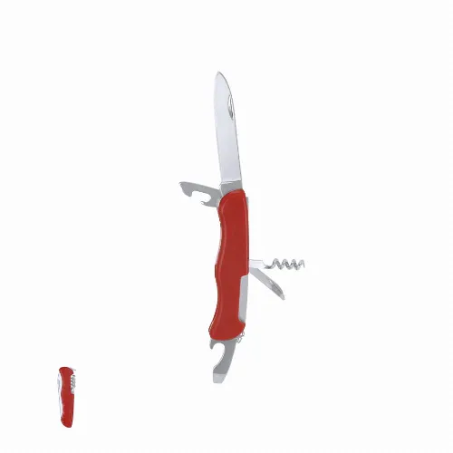 Multi-tool knife with stainless steel accessories with 5 functions, coated in durable ABS.
